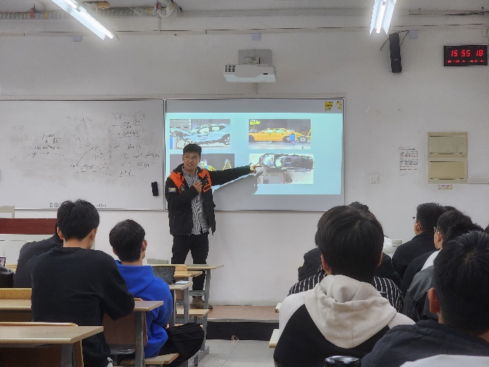 韩红星校友作为上海沃尔沃汽车研发有限公司的汽车动力系统测试研究部门高级试验师,有着近十年丰富的汽车动力系统相关经验。他以“汽车常用参数和测试方法”为题,向同学们介绍了汽车动力系统发展趋势;讲解了汽车发动机性能的测试方法及参数;教授了电动汽车的动力系统性能的测试方法及参数。另外,他从自身工作经历的角度出发,向同学们介绍了大学毕业后如何适应职场,并回答了同学们的提问。