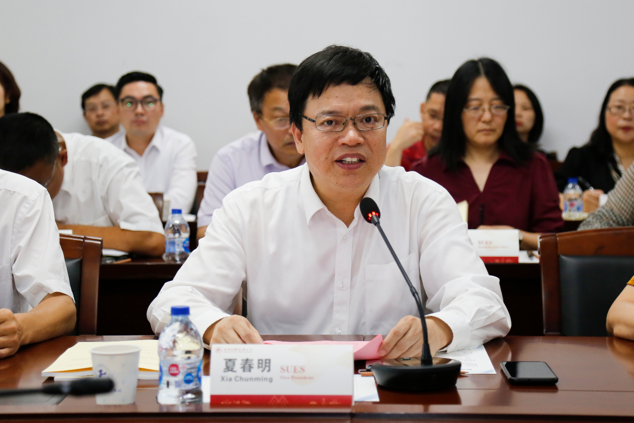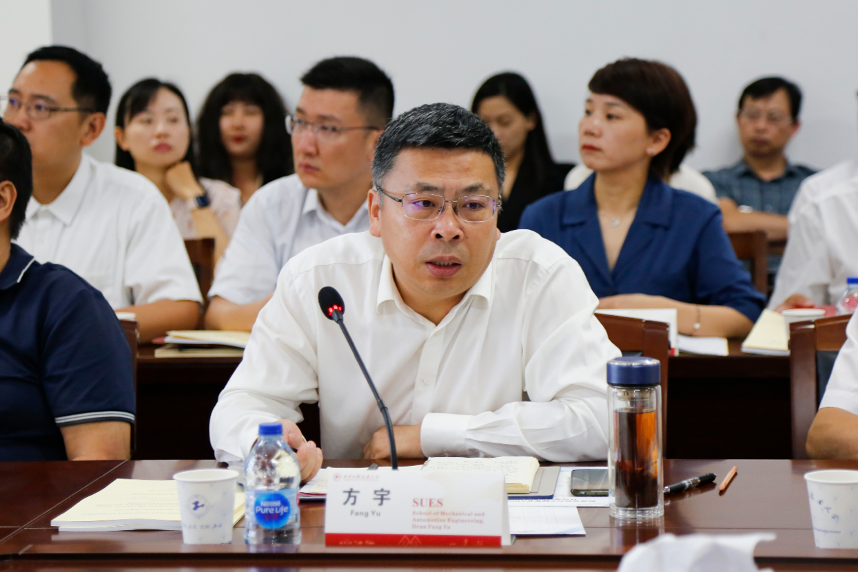 At 9:00 a.m., September 7, the meeting of the expert group was held in Room 8B604 in the School of Mechanical and Automotive Engineering. Mr. Bernd Muehe, former head of ABB Power Products China and Tao Yiran, a student of Shanghai Jiaotong University, Mr. Xia Chunming, Vice President of Shanghai University of Engineering and Technology, and relevant departments such as the Office of the University, Academic Affairs Office, Quality Office, National Communication Office, Personnel Office, Planning Office, Finance Office, Student Affairs Office, Recruitment Office, Resources and Practices Office, Library, Information Office, Youth League Committee, and Industrial Training Center attended the accreditation visit. The responsible officer of the Industrial Training Center and relevant functional departments, the responsible officer of the School of Mechanical and Automotive Engineering, the responsible officer of the specialties and the teachers of the relevant specialties attended the accreditation inspection meeting. The meeting was held by Kuang Jianghong, the Director of the Quality Office (Education Development Center).