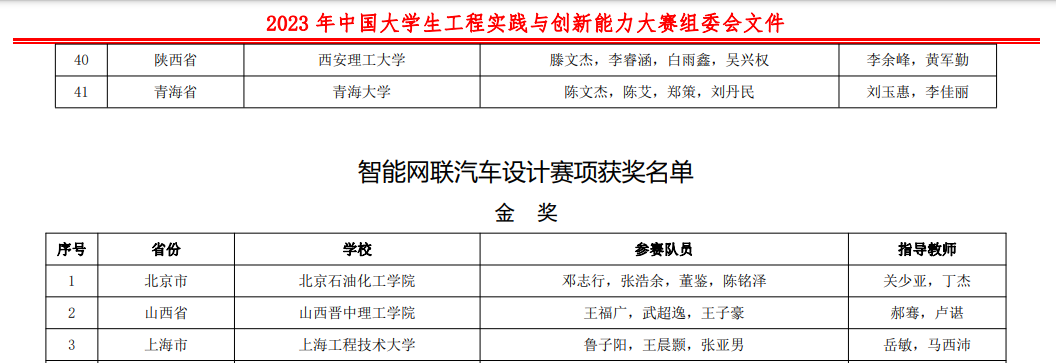 2023年12月9-10日,2023年中国大学生工程实践与创新能力大赛智能网联汽车赛项总决赛在深圳技术大学举行。我校大学生汽车科创基地智能车车队在智能网联汽车赛项总决赛中荣获全国总决赛金奖一项,是我校首次在该赛项的全国总决赛中斩获金奖。