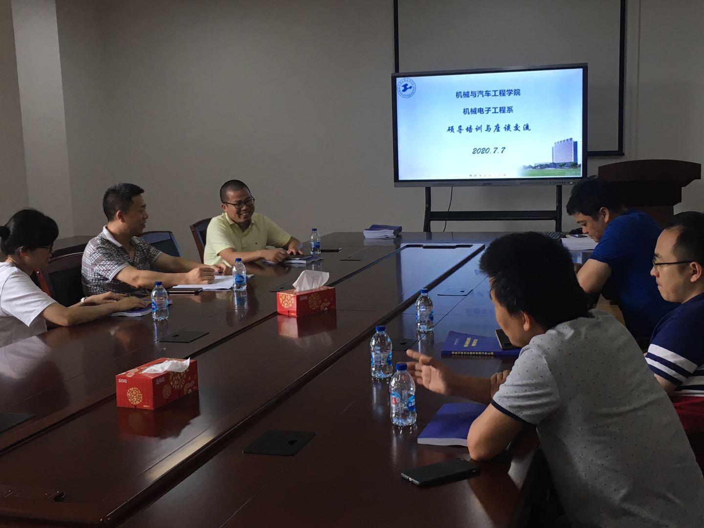 为加强硕导队伍建设,提升研究生培养能力与水平,机械电子工程系于2020年7月7日下午1点半在交通楼8B604召开了“机械电子工程系硕导培训及座谈交流会”,针对最新的研究生教育管理制度进行学习培训,并交流分享了研究生培养过程中遇到的困难以及成功的经验。
