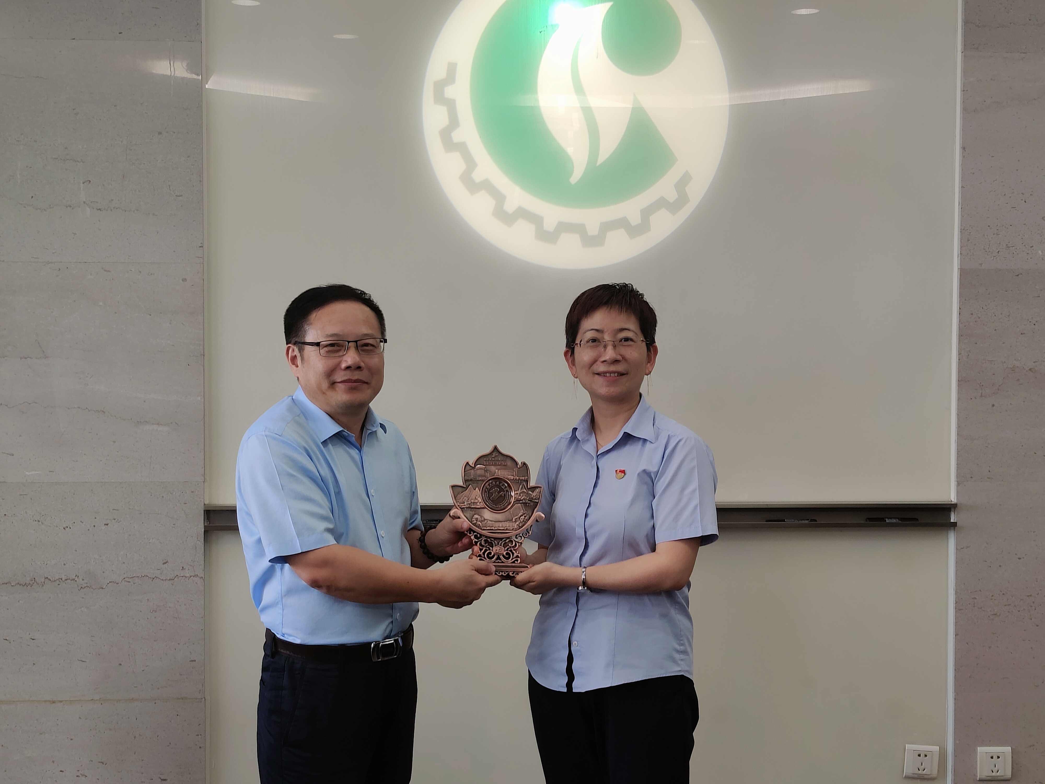 张华院长向上海烟草机械有限责任公司党委副书记、总经理韩芸赠送纪念品。