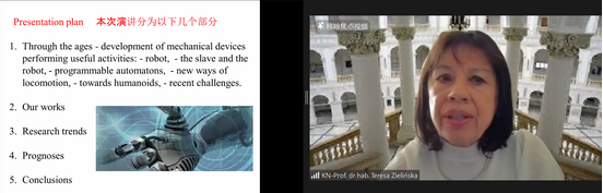 Inthe keynote speech session of the conference, Professor Zhang Jianhuaof Shanghai University, Professor Biao Huang of University ofAlberta, Canada, Adjunct Specially Appointed Professor of DonghuaUniversity, Professor Li Youfu of Hong Kong University, ProfessorZhang Xuebo of Nankai University, Professor Yue Yi of ShanghaiUniversity of Engineering and Technology, Calabri, Italy ProfessorGiuseppe Carbone from Asia University and Professor Hab. TeresaZielińska, deputy director of the Institute of Aeronautics andApplied Mechanics of Warsaw University of Technology, respectivelymade the topics "Basic application research and integratedinnovation of the new generation of new display technology" and"Reinforcement Learning with Control" EngineeringApplication", "Robot vision: insights from bio-inspiredvision to machine vision systems", "Robust RobotLocalization for Autonomous Navigation", "Design andExperimental Research of a novel High-Precision 5-DOF Hybrid Robot","On The The wonderful reports of "Design of AssistiveRobotics Solutions" and "Robotics in a historicalperspective" conducted in-depth exchanges with participants onthe hot and difficult issues in intelligent control and roboticcybernetics.