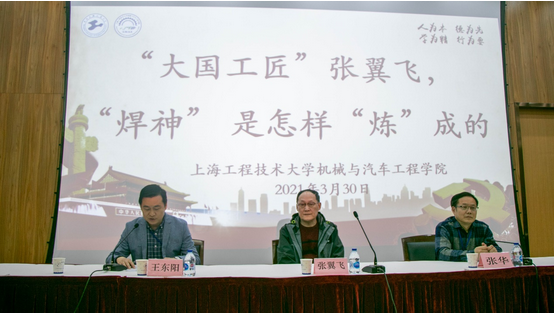 Inorder to promote the spirit of craftsmanship, show the demeanor ofmodel workers in the new era, realize that professional education andideological education go in the same direction, and improve theeffectiveness of practical education, on the afternoon of March 30,the School of Mechanical and Automotive Engineering invited nationalmodel workers and the winner of the Chinese Skills Award, 2016"Shanghai Craftsman"-Chief Welding Technician of ChinaShipbuilding Corporation and Chief Technician of Hudong ZhonghuaShipbuilding (Group) Co., Ltd. Zhang Yifei came to the school as aguest in the "Yangtze River Delta Lecture Hall" of ourschool and gave special lectures to teachers and students of theschool. Wang Dongyang, deputy secretary of the party committee of thecollege, presided over the lecture. Dean Zhang Hua and studentrepresentatives from various departments of the college attended thelecture.